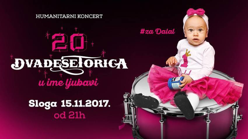 Ukoliko i vi želite pomoći maloj Dalal to možete učiniti uplatama na račune ili odlaskom na koncert Dvadesetorice na kojem je zagarantovan dobar provod.